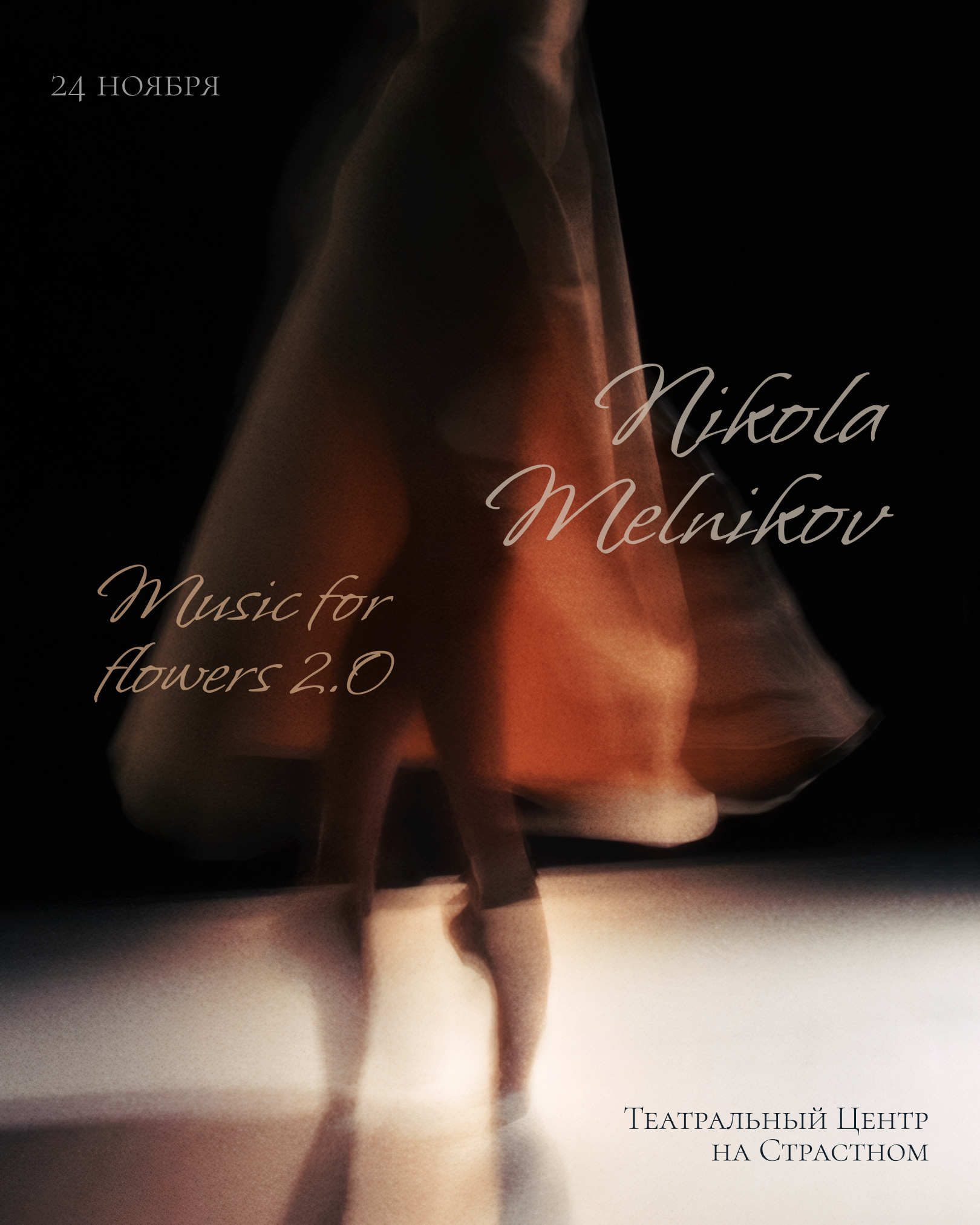 24 ноября в Театре на Страстном композитор и пианист Никола Мельников представит премьеру хореографического перформанса Music for Flowers 2.0 — аудиовизуальное исследование связи человека, природы и технологий.